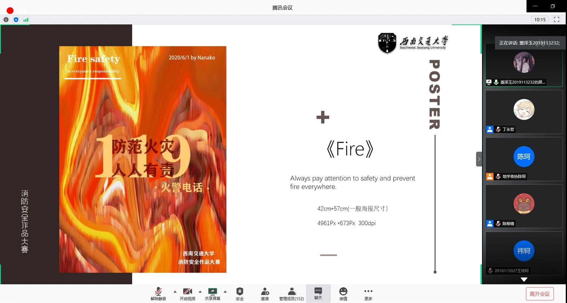 地学学院青年志愿者协会承办的“green&safety让你好好过”学生实践活动——消防安全宣传作品大赛于腾讯会议上举办决赛,并圆满落幕。