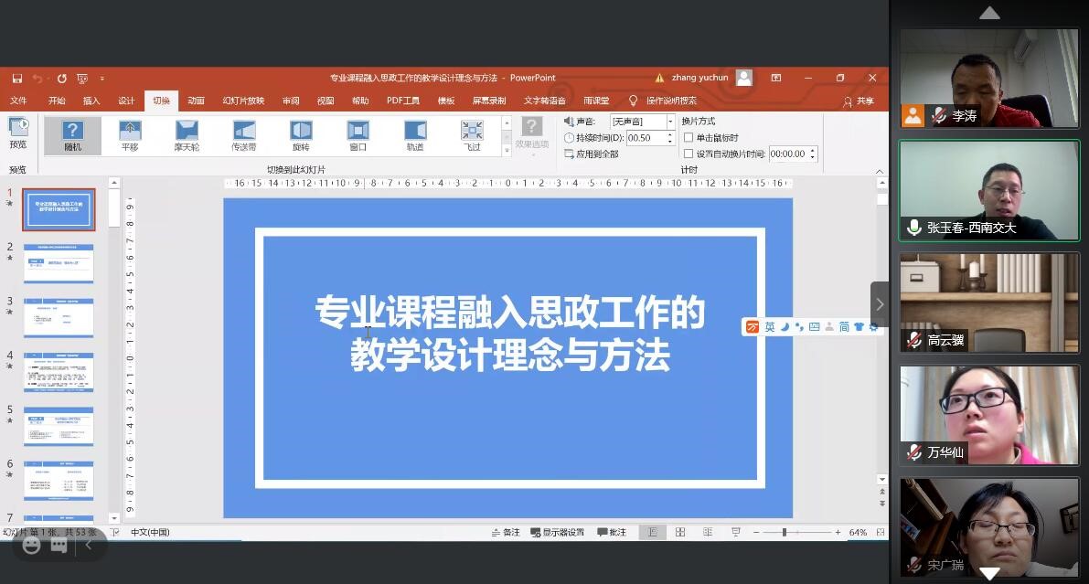 其次,张玉春副院长从关于“教学设计”、专业课程思政教学设计的“五个环节”、如何设置专业课程思政目标、专业课程思政内容的选择和融入路径、开展专业课程思政的方法、思政目标与专业课程的融合的标准、如何进行引导、如何进行评价、各级领导层面可以做的工作、相关专业课程思政实例等10个方面分析了专业课程融入思政工作的教学设计理念与方法。