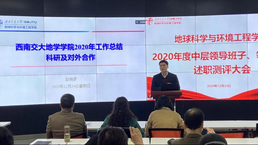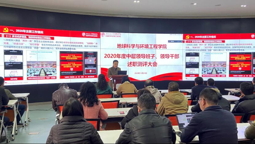 12月24日,地球科学与环境工程学院于X4243顺利召开2020年度中层领导班子、领导干部述职测评大会,大会采用线上线下相结合的方式。本次会议由地学学院党委书记关秦川主持,全院教职工参会。