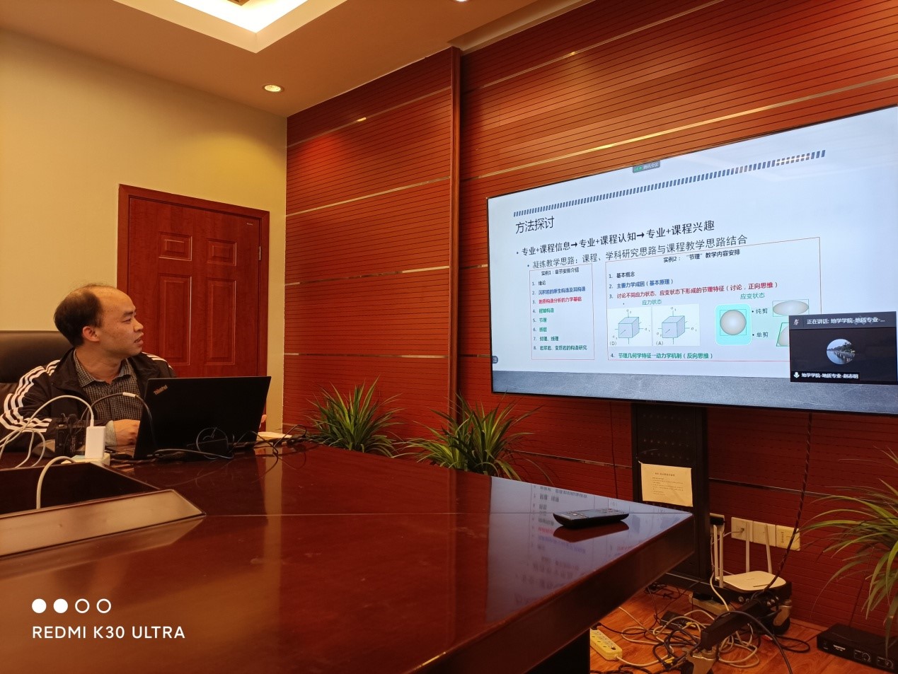 2021年4月27日下午2点在地学学院4531会议室,地学学院教学交流小组开展了本学期第二次线下与线上相结合的交流会。地学学院部分教师、信息学院胡香荣老师、西南科技大学范勇老师参加了此次交流活动。
