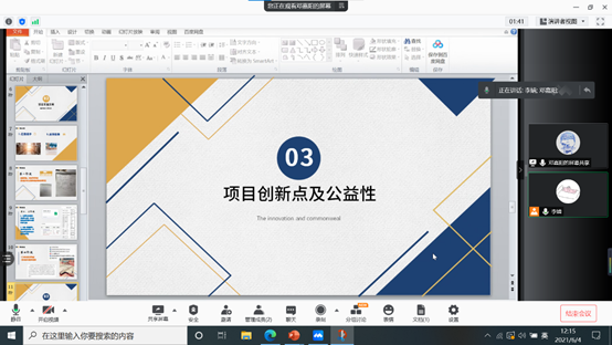 在答辩环节,评委老师也向参赛选手进行了指导,就如何优化项目,从团队建设和核心产品、市场分析与客户管理、业务系统及商业模式等关键环节发表了专业意见;也表示希望同学们能再接再厉持续不断优化项目,争取在来年继续看到更成熟的参赛项目。