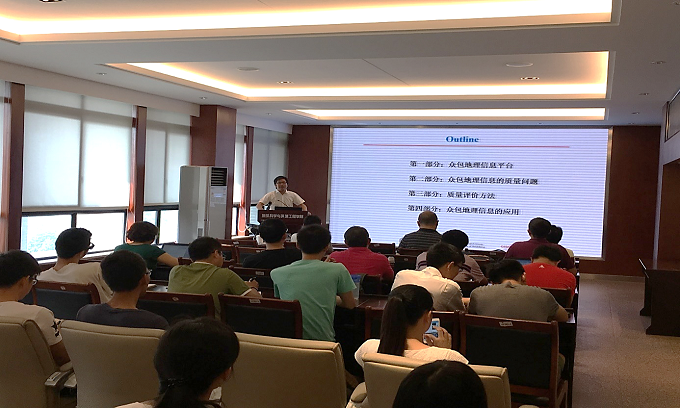 In Morning in 22nd, August, 2016, Dr. Fan Hongchao (project leader of urban modelling in Heidelberger University, Germany) gave a research presentation entitled “The Quality Issues of Crowdsourced Geographic Information Data”. Prof. Zhu Jun, the associate head of the department of Geomatics in Faculty of Geosciences and Environmental Engineering, chaired this presentation. In this presentation, Dr. Fan introduced the acquirement of crowdsourced geographic data, quality assessment and other typical applications.