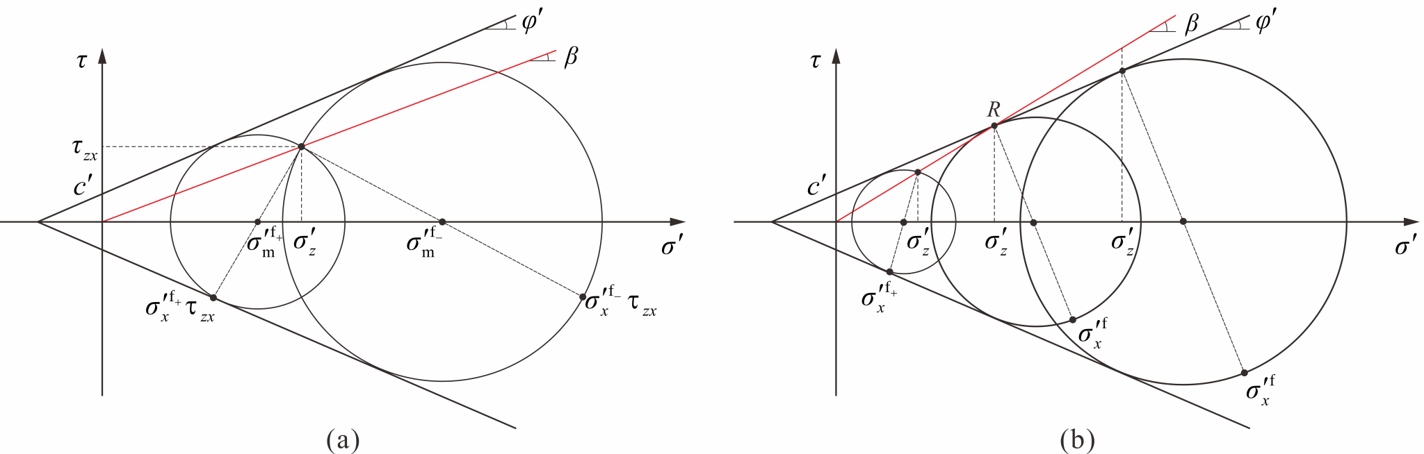 图3. 下限分析中坡体内的应力状态与坡体内侧向力的分布