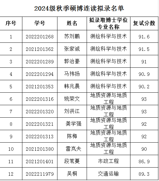 经学院招生工作领导小组选拔,以下同学符合选拔条件,经过复试,取得2024年硕博连读拟录取资格(最终录取以研招办公告为准),现予以公示,公示期为五个工作日,2023年12月28日至2023年1月4日,如有异议请在公示期内联系黄老师,电话:66367592。