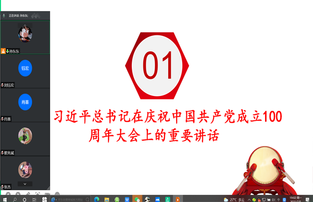 2021年7月5日晚上19点整,地学学院研19级地质2班党支部开展了“党史学习教育”专题组织生活会。本次活动主要由孙东东同志主持,会议内容主要包括学习“习近平总书记在庆祝中国共产党成立100周年大会上的重要讲话”和党员的批评与自我批评以及党支部问题的整改相关讨论。