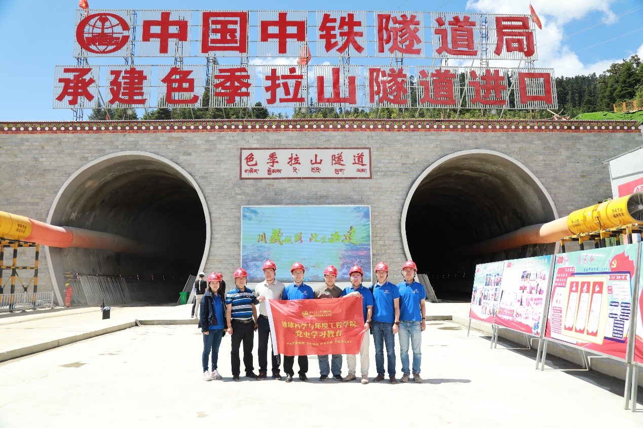 专业学科建设相结合,关秦川书记率领师生党员走进中铁隧道局等施工单位,参观走访川藏铁路沿线的施工现场,交流探讨施工过程中面临的各类地质、环境问题,发掘传承“高原红”中的红色基因,立足专业,领悟川藏铁路中修建过程中发扬出的新时代“两路精神”。