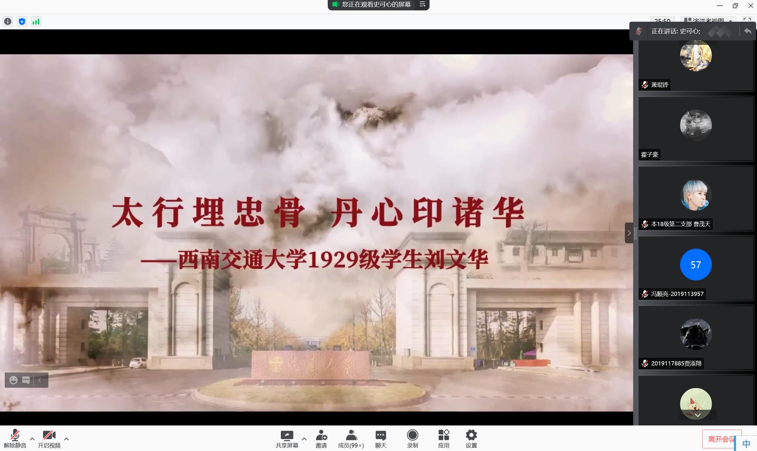 2021年9月30日,是我国第八个“烈士纪念日”。为推进党史学习教育走深走实,深刻缅怀英雄的丰功伟绩,颂扬传承先烈的崇高精神,激励党员、积极分子进一步坚定理想信念,切实提高党员发展的质量。地学学院分党校于9月30日下午18:00通过腾讯会议线上开展“百年英烈铸党魂,砥砺奋进续新篇”——“学党史·祭英烈”主题教育活动,本次活动由地学学院分管学生党建的史可心老师主持,学生党建负责人文强老师和290余名预备党员、入党积极分子参加。