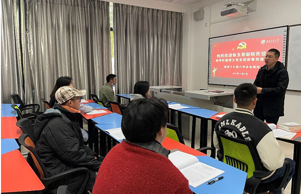 2021年12月3日上午,地学博士环境党支部邀请地学学院副院长张玉春教授于犀浦校区X4131教室为学生党员解读党的十九届六中全会精神,本次党课由博士环境党支部书记闵雪峰同志主持,博士环境党支部全体成员参加。