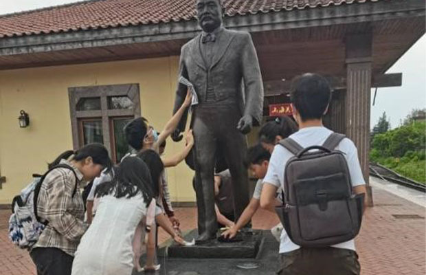 参加打扫的同志们分工明确积极主动,有的人抹去污尘,有的人擦去污渍。用我们的劳动,让校园建筑恢复它的本色,不仅愉悦了我们的眼睛,而且愉悦了我们的心情。对于支部党员来说,这次活动意义深远,不仅仅是一次服务活动,更是一次学习历史的活动。屹立在学校的伟人雕像,时时刻刻提醒我们,不忘初心,牢记历史,只有了解过去,才能更好地建设未来。