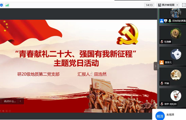 2022年5月17日晚7点半,研20级地质二班党支部于线上顺利开展党日活动,此次活动主要围绕“青春献礼二十大、强国有我新征程”这一主题而开展,党日活动的内容为“学习北京东奥精神”。活动由党支部成员田浩然同志主持,参加此次大会的还有支部全体正式党员和预备党员。