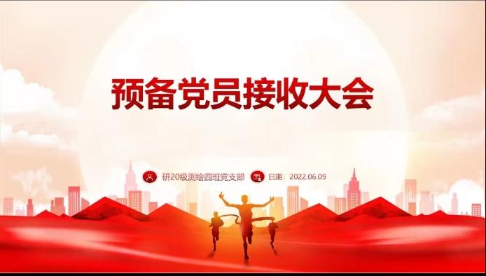 注入新血液,凝聚新力量。6月9日中午,研20级测绘四班党支部在线上召开了预备党员接收大会,党支部书记周钰婷主持本次会议,党支部全体成员参加了会议。