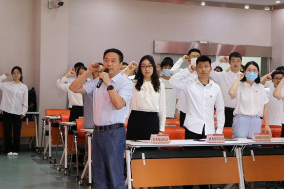 表彰过后,学院党委举行了“党旗下的誓言”——新党员入党宣誓和老党员重温入党誓词仪式,仪式由关秦川同志领誓,铮铮的誓言激励广大党员继承革命传统,牢记光荣使命,永葆党的先进性和纯洁性。