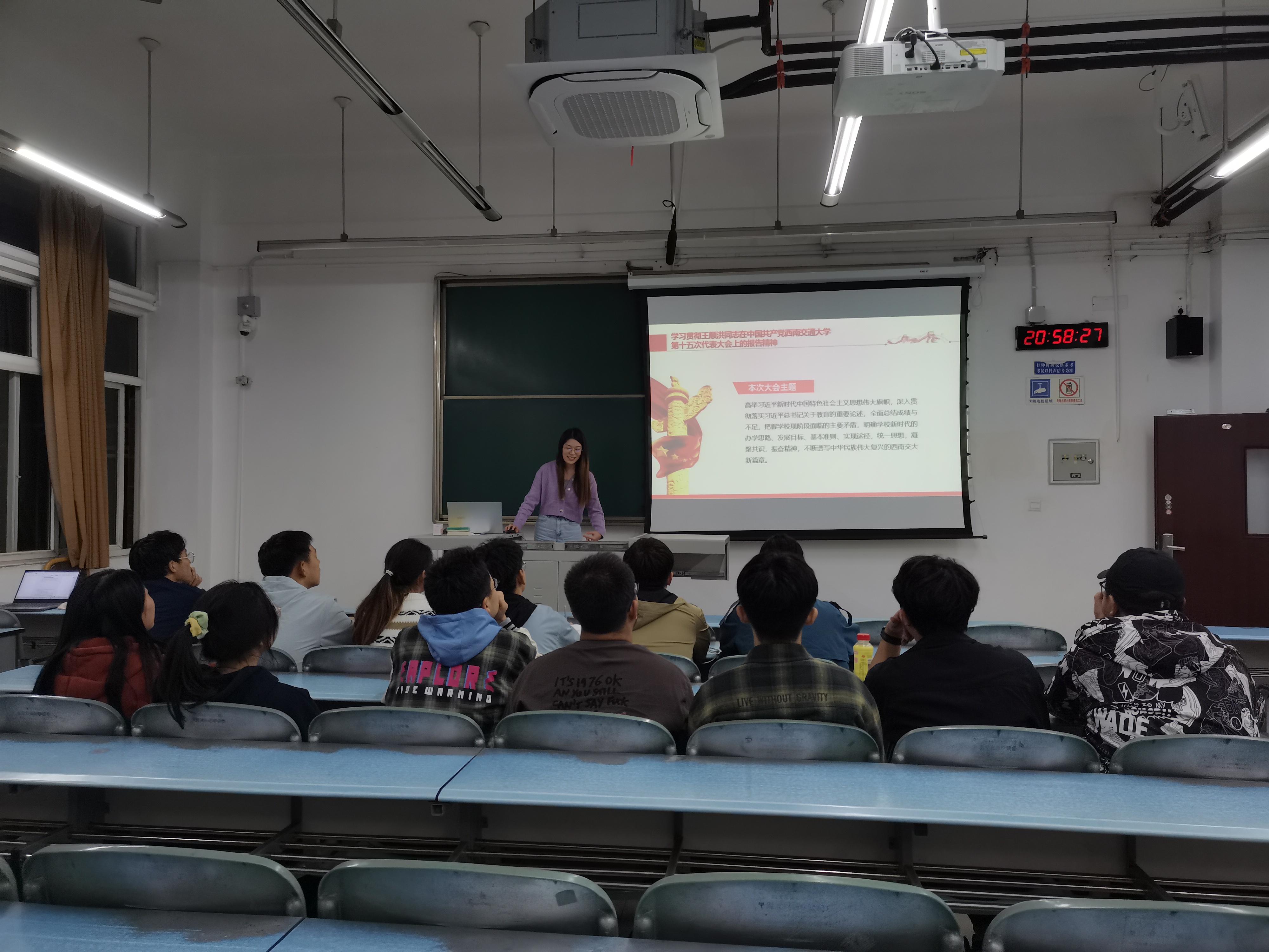 为深入领会学校第十五次党代会精神,加强学生会在思想政治层面对学院青年的引领作用,号召青年学生干部紧跟学校党委的决策部署,2022年10月10日20:40,地学学院学生会组织学生会工作人员在犀浦校区2224教室集体学习了学校第十五次党代会精神。