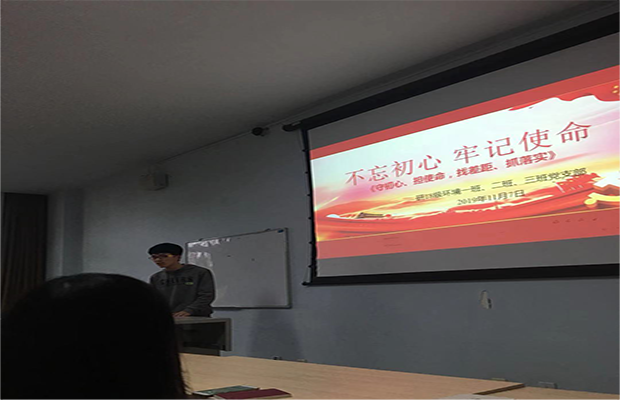 犀浦校区x4133教室开展了“不忘初心,牢记使命”的党日活动。本次会议主讲人为党支部书记邢少帅。