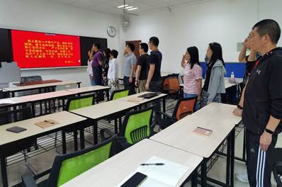 首先,全体教工党员肃立行注目礼,重温入党誓词,表达了对党的忠诚和对党的事业的坚定信仰。随后,党支部书记苏凯同志讲授党课,带领支部党员学习了习近平总书记在中共中央政治局第五次集体学习时发表的重要讲话。