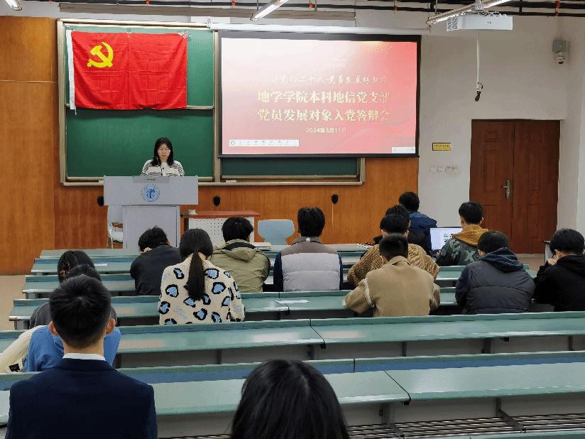 为做好2024年发展党员工作,切实提高党员发展质量,本科地信党支部于2024年3月11日在犀浦校区X4516开展发展对象答辩大会,本次大会由李慧同志主持,地学学院党委副书记郑波书记出席并指导大会。