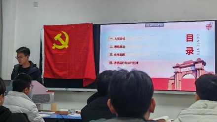 2024年3月12日19时,为深入学习贯彻习近平新时代中国特色社会主义思想和党的二十大精神,紧跟热点时事,研22级地质第一党支部于X4133开展3月主题党日活动,由党支部书记杨洋同志主持。党日活动之后由陈炜、王晋昆和罗嘉潍三位候选人作领学人并进行发展对象答辩,旨在壮大党员队伍,发挥党员先锋模范作用。共17名支部成员参加。