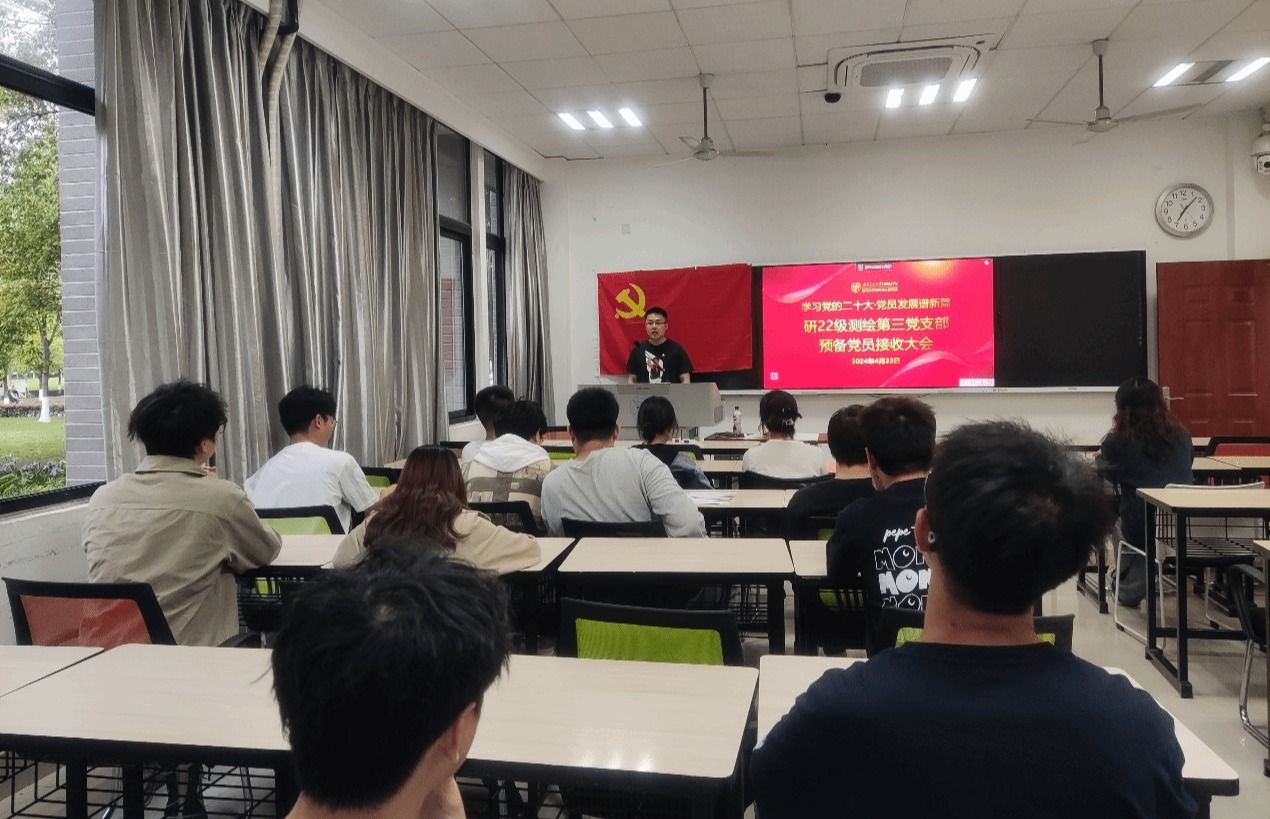 2024年4月22日19点整,地学学院研22级测绘第三党支部在X4129教室顺利召开预备党员接收大会,本次会议的主题:讨论是否接收李炎秋同志为预备党员。会议由党支部书记刘翔同志主持,支部所有党员均参与。