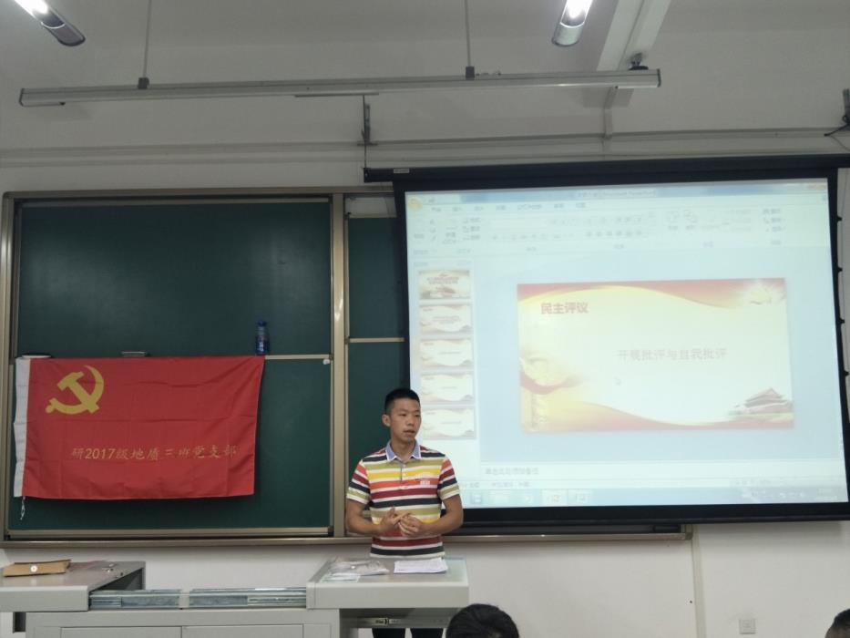 5月4日晚上,研17级地质三班党支部全体党员以及积极分子在X9201教室开展了民主评议。活动由党支部书记袁彬主持。
