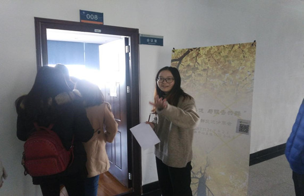 西门向电子科大出发,按商定路线于2点左右到达科大,并与科大资环党支部的迎接人员见面,完成交接,并在其带领下来到联谊活动会议室,在会议室门口得到了科大资环党支部书记李心怡同志及全体支部成员的热烈欢迎!