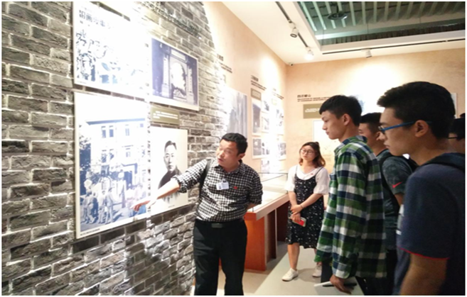 在党支部副书记杨乐同志的带领下,全体成员徐徐进入校史馆,一下映入眼帘的是一辆具有轨道交通特色的火车头,在旁边的电子阅览设备上滚动播放着交大建校120周年之际的诸多活动纪实视频,看完视频,绕过机车,交大的历史篇章就此翻开第一页。