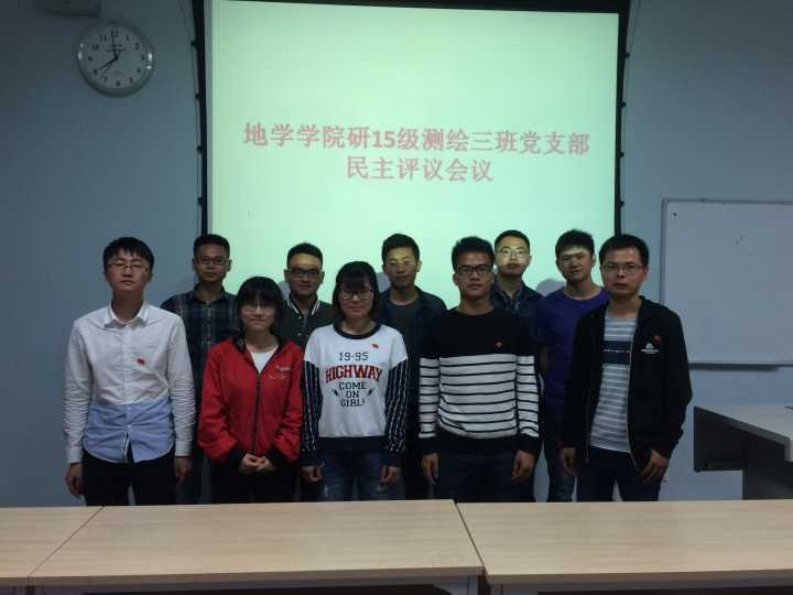 犀浦校区x9134教室召开民主评议大会,地学学院研15级测绘三班党支部全体党员及预备党员参加会议,会议由测绘三班党支部书记谢亚坤主持。