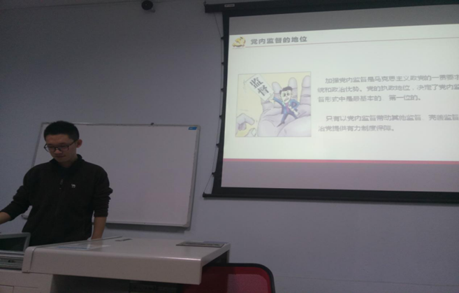 犀浦校区X9135教室开展了“学习贯彻党的十八届六中全会精神”专题教育活动。一班党支部书记王铭庆组织开展了本次会议。三班党支部书记赵雪负责记录和照相。支部的指导老师冯丽梅老师出席了本次会议。