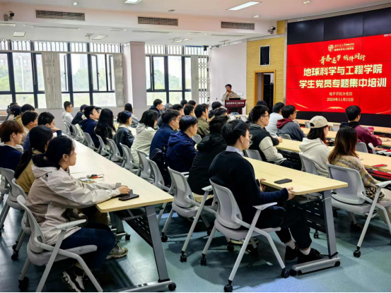 宣讲会议结束后,地学学院紧接着开展了学生党员专题集中培训营。在培训过程中,文强老师对同学们提出了殷切期望。他希望大家在收听集中培训时可以以更加认真的态度去学习,不仅要深入理解培训内容,更要将其转化为实际行动。同时,文强老师也强调了纪律的重要性,要求同学们在培训期间严格要求自己,遵守培训纪律,展现出地学学院学生党员的良好风貌。