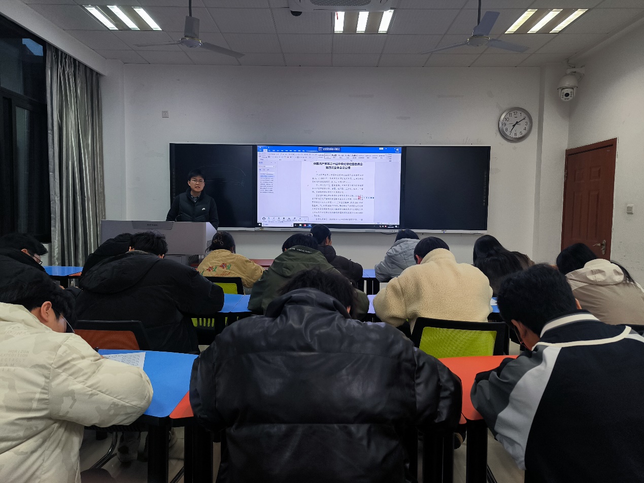 2025年3月10日19点整,地学学院研22级测绘第三党支部在X4134教室顺利召开了本次主题党日活动。此次党日活动的主题是“学习教育强国纲要,推动高质量发展”。此次党日活动的主要内容包括学习《教育强国建设规划纲要(2024—2035年)》、习近平总书记在《求是》杂志发表的重要文章《进一步全面深化改革中的几个重大理论和实践问题》和习近平总书记在二十届中央纪委四次全会上的重要讲话等。本次会议支部所有党员均参加,会议由党支部书记刘翔同志主持。