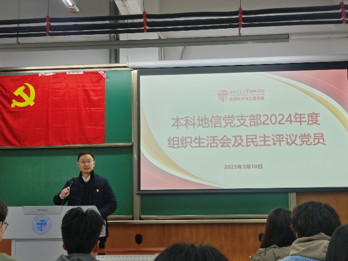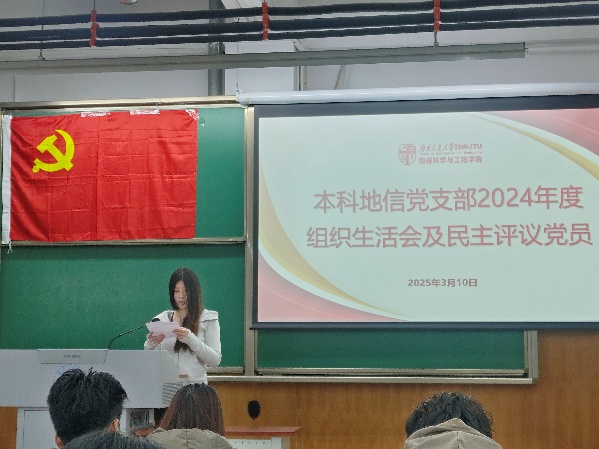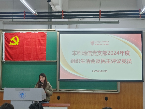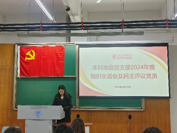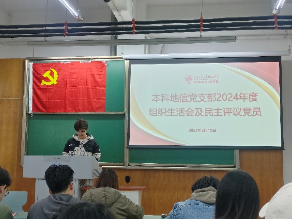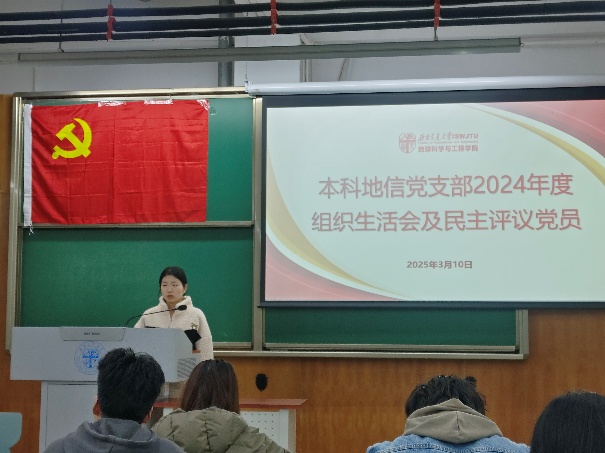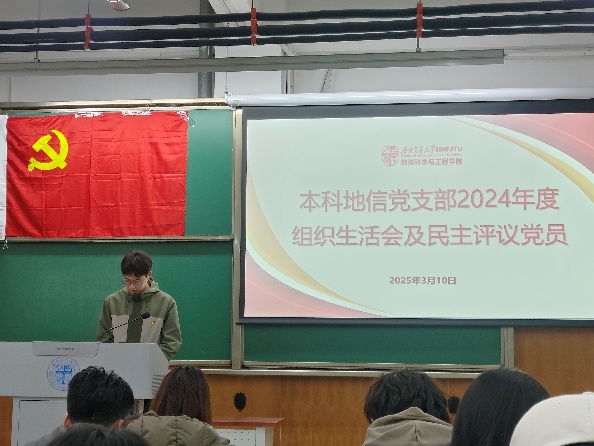 为加强党的思想建设,培养党内政治文化,提高党的理论水平和战略能力,增强基层党组织教育力、引领力,本科地信党支部于2025年3月10日19:30在X4153召开了民主评议党员会议。由本科地信党支部书记候王悦主持会议,本科地信党支部全体党员参与,地学学院党委副书记郑波出席并指导大会。
