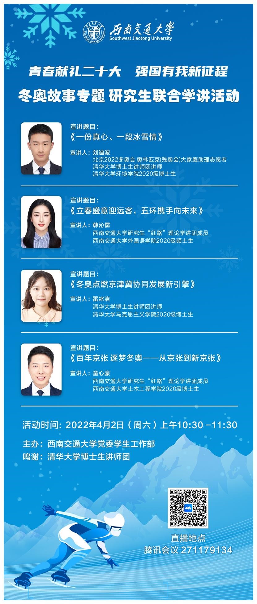 拟邀请清华大学博士生讲师团联合开展“青春献礼二十大,强国有我新征程”——冬奥故事专题宣讲活动,现就活动有关事项通知如下: