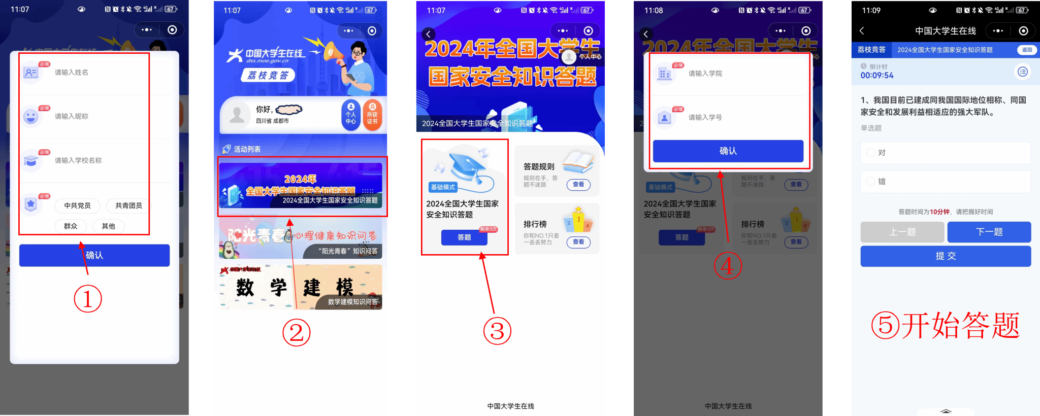 2024年全国大学生国家安全知识竞赛线上答题步骤示例