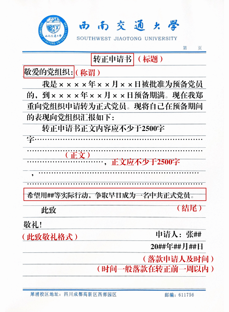1.手写版:直接按照上述格式手写在交大信纸上即可