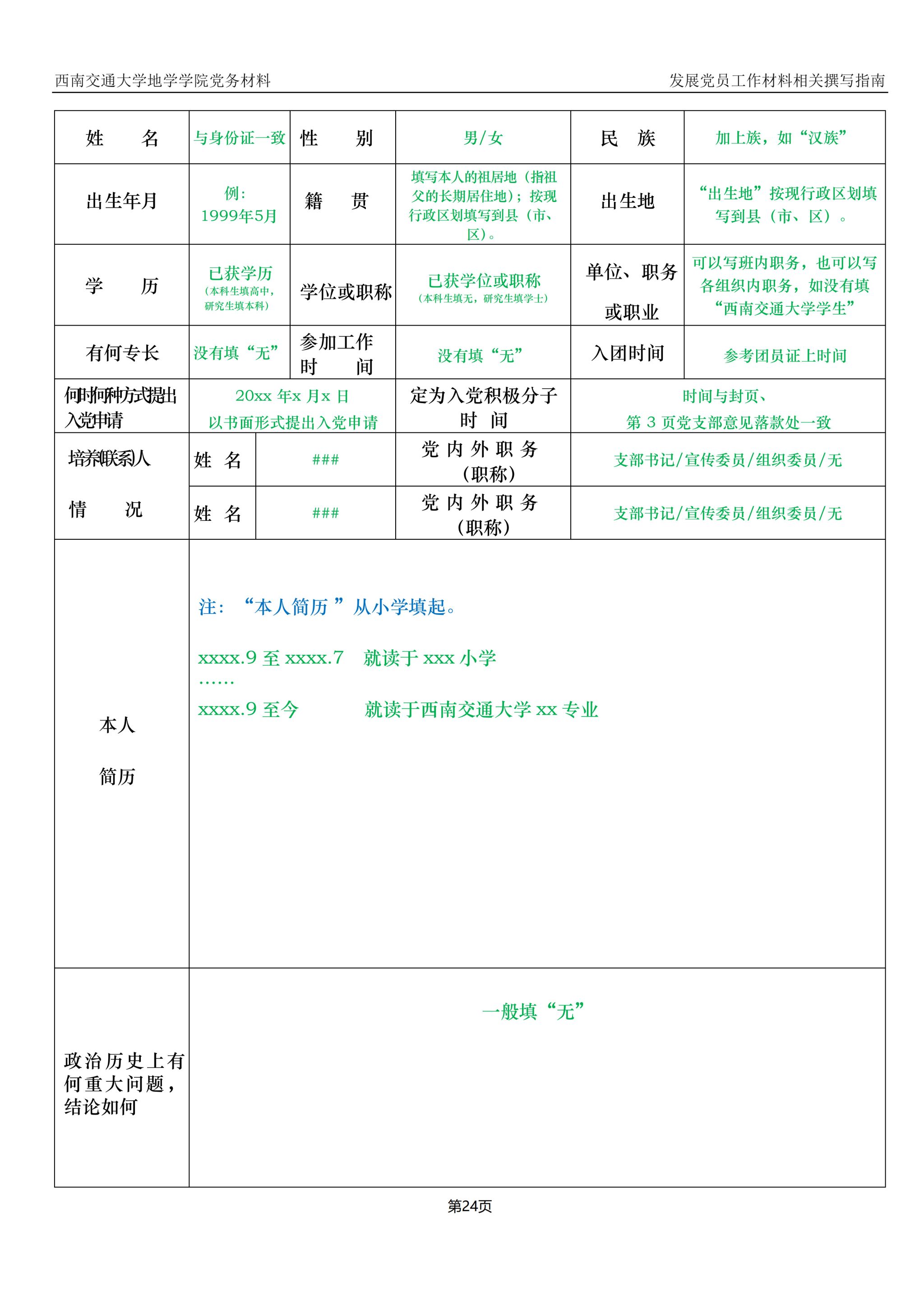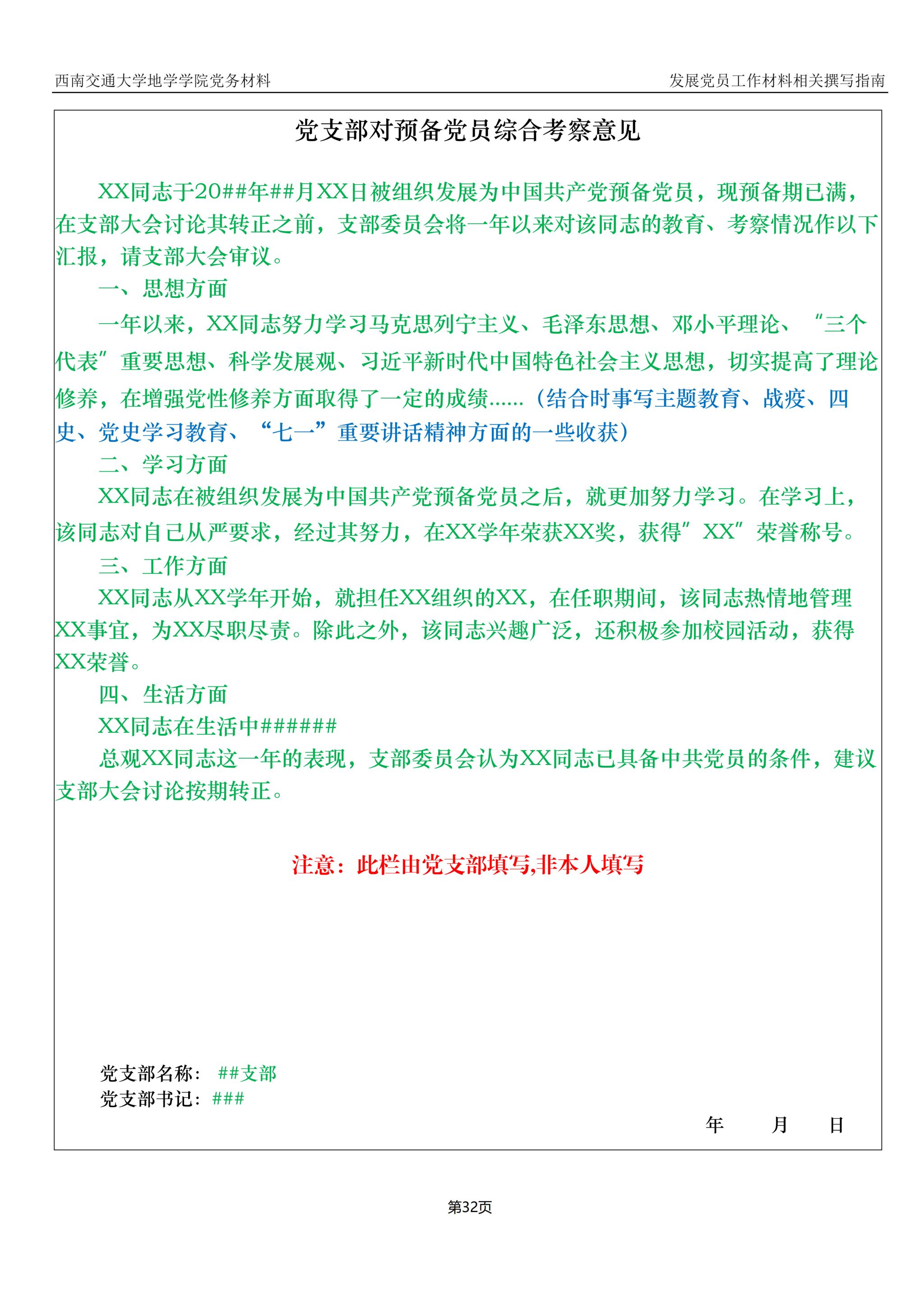 入党积极分子、发展对象、预备党员培养教育考察登记表撰写指南: