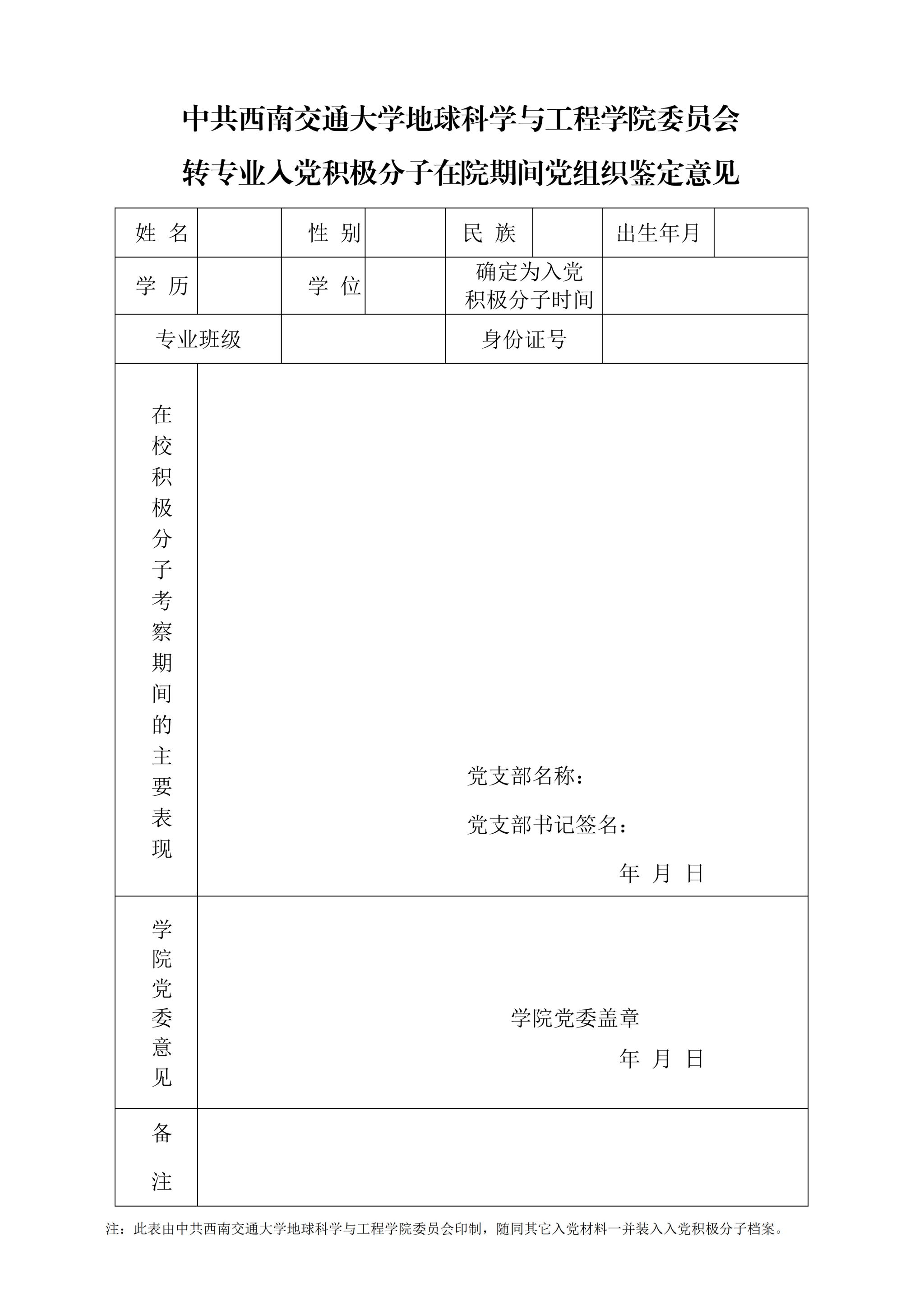 (2)转专业入党积极分子在院期间党组织鉴定意见样例与撰写指南: