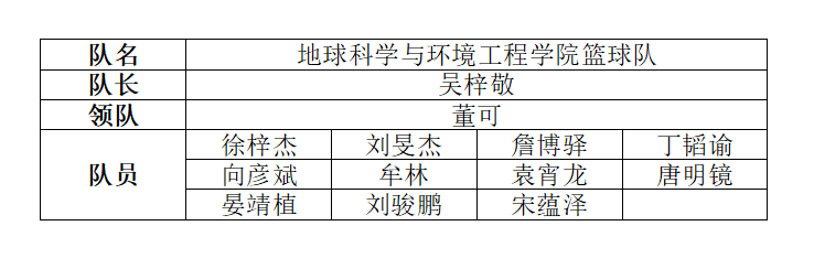 附: 2021年新生篮球赛地学学院参赛队伍名单: