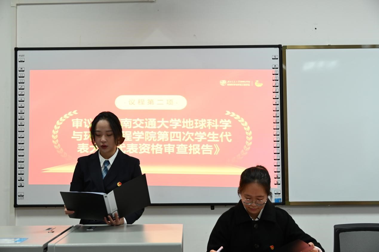 地球科学与环境工程学院第四次学生代表大会代表资格审查报告》,汇报代表资格审查情况,并由全体参会代表审议通过。
