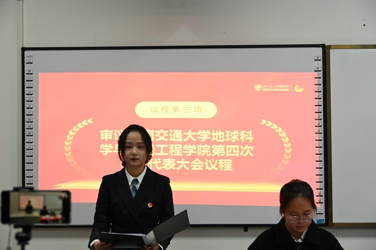 地球科学与环境工程学院第四次学生代表大会议程(草案)》,由全体参会代表审议通过。