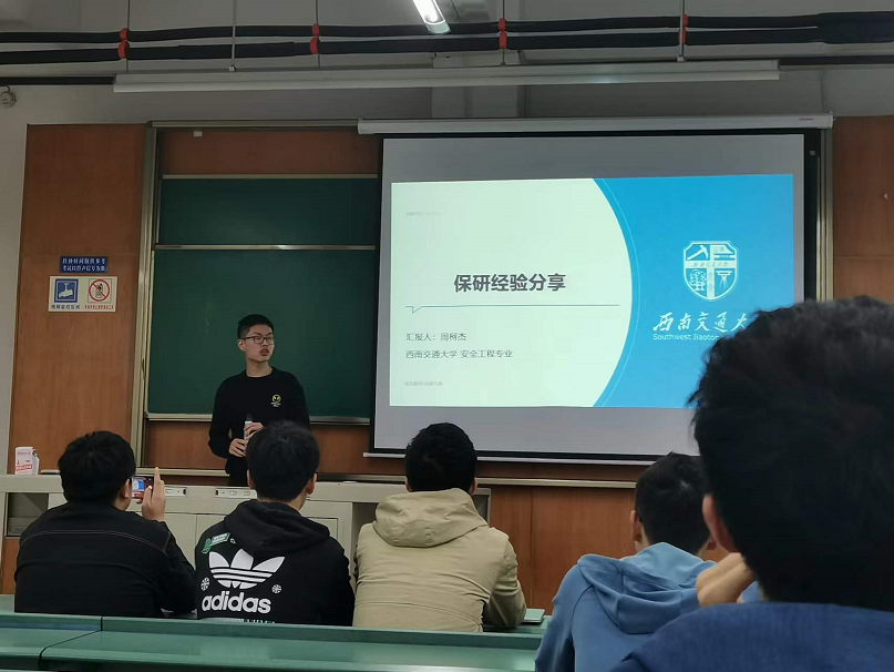 第三场讲座于11月17日晚于X4158线下线上同时举行,地学学院学习与科创中心邀请了彭俊岚与贺呈虎两位成功保研的优秀学长主讲保研经验。首先,彭俊岚从资源勘查专业角度出发,针对成绩要求、竞赛准备及保研流程三个方面进行了详细介绍。同时彭俊岚分享了多条切身经验,并以照片的形式分享了他自身的培训经历。最后,彭俊岚以诙谐的语言分享了他保研之后的生活及感受,并对同学们送上了美好的祝愿。