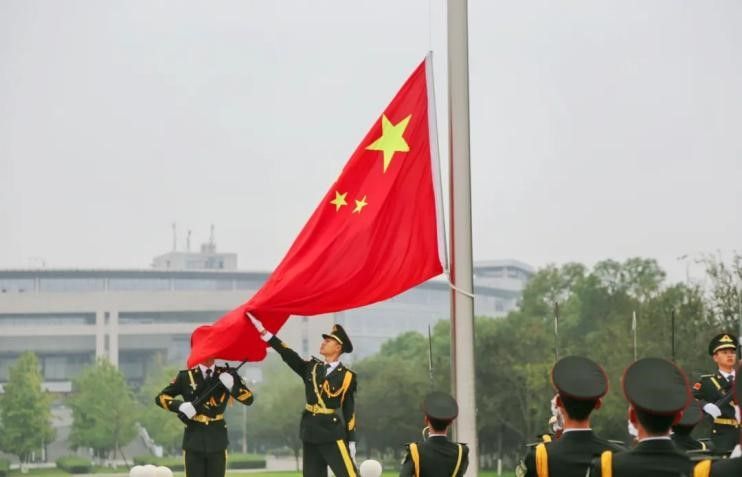 上午8时整,仪式开始,国旗队排着整齐的队列,迈着铿锵的步伐,护送着五星红旗走向旗杆。随着《义勇军进行曲》的雄壮的旋律,鲜艳的五星红旗在秋风中高高飘扬,全体师生向国旗行注目礼,高唱国歌,表达对祖国母亲热忱的祝福和最清澈的爱。