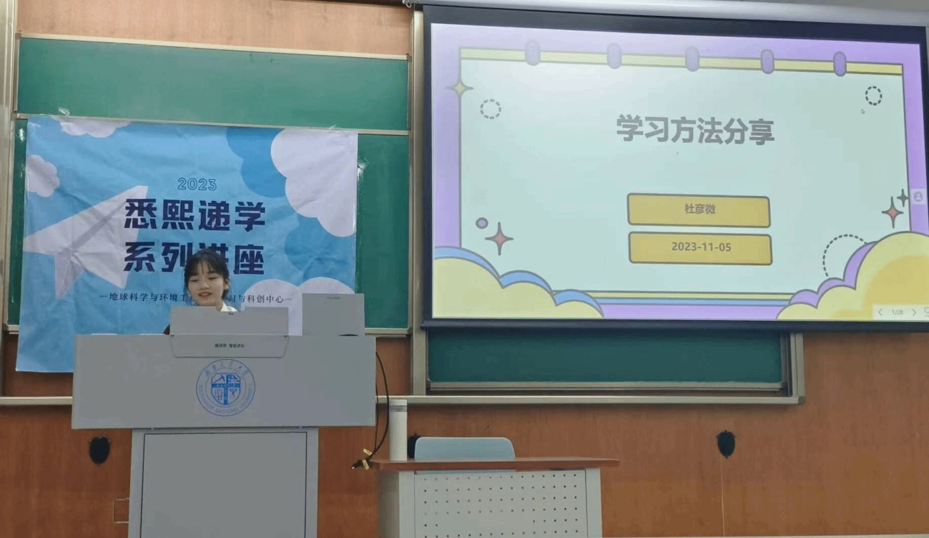 11月5日晚,由地学学院学习与科创中心主办的“悉熙递学”系列讲座第二场“学习经验大礼包”在犀浦校区X4156顺利举办。本次讲座旨在为低年级同学介绍重点公共基础课程及相关专业课程的学习方法,帮助同学们解答公共课、专业课的学习困惑。本次讲座我们邀请了2021级地理信息科学专业付政和2021级消防工程专业杜彦微两位优秀同学向相关专业同学做学习方法经验分享。