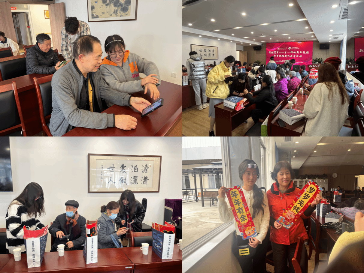 犀浦校区五食堂三楼老年中心开展了“视频贺岁——不一样的新年祝福”贺岁视频制作教学志愿活动。