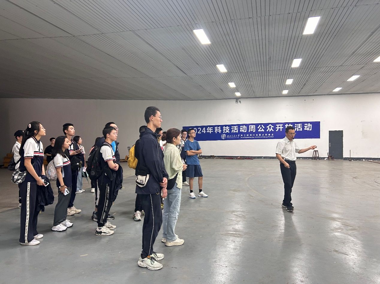 接下来,西南大学附属中学师生前往XNJD-3风洞实验室进行参观学习。风工程试验研究中心李志国老师对风洞实验室作出了简单介绍,阐明其对于土木防风领域重要性。并带领同学们进入到风洞实验室之中。使大家切身感受“理论与实验、实验与应用”相结合的魅力。