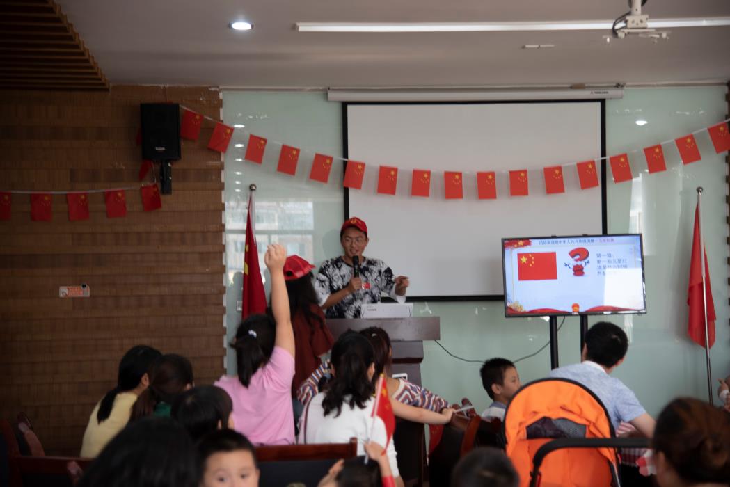趁热打铁,地学学院学生同时也是国旗知识主讲夏子明同学上台传授国旗知识。这时小朋友们安静极了,会场里回荡着夏子明同学清朗的声音。为了调动小朋友们的积极性,鼓励小朋友们多记关于国家,关于国旗的知识,我们还在讲座中添加了有奖问答环节,很多小朋友都很棒,回答出了很多问题,大大出乎我们的意料。