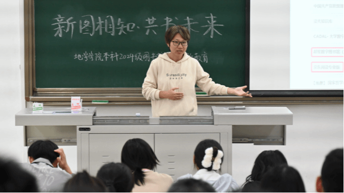 图书馆王琼、朱维凤、靳瑛杰三位老师主讲,由地学学院24级本科辅导员主持,24级全体本科新生参加。