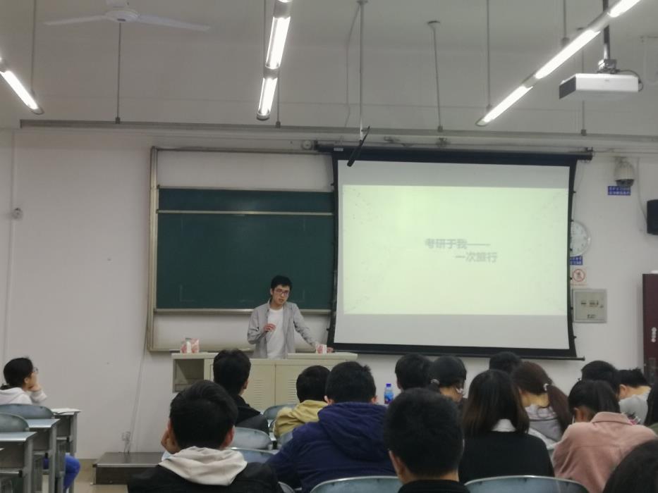 会议于2018年5月10日晚七点三十分如期举行,邀请到14级六大专业共计18名优秀学生代表与同学们分享自己的考研、申请出国经验。