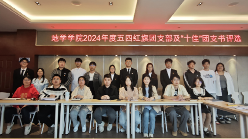 活动最后,到会全体老师与团支部代表进行合影留念。至此,地学学院2024年度五四红旗团支部及“十佳”团支书评选活动圆满结束!