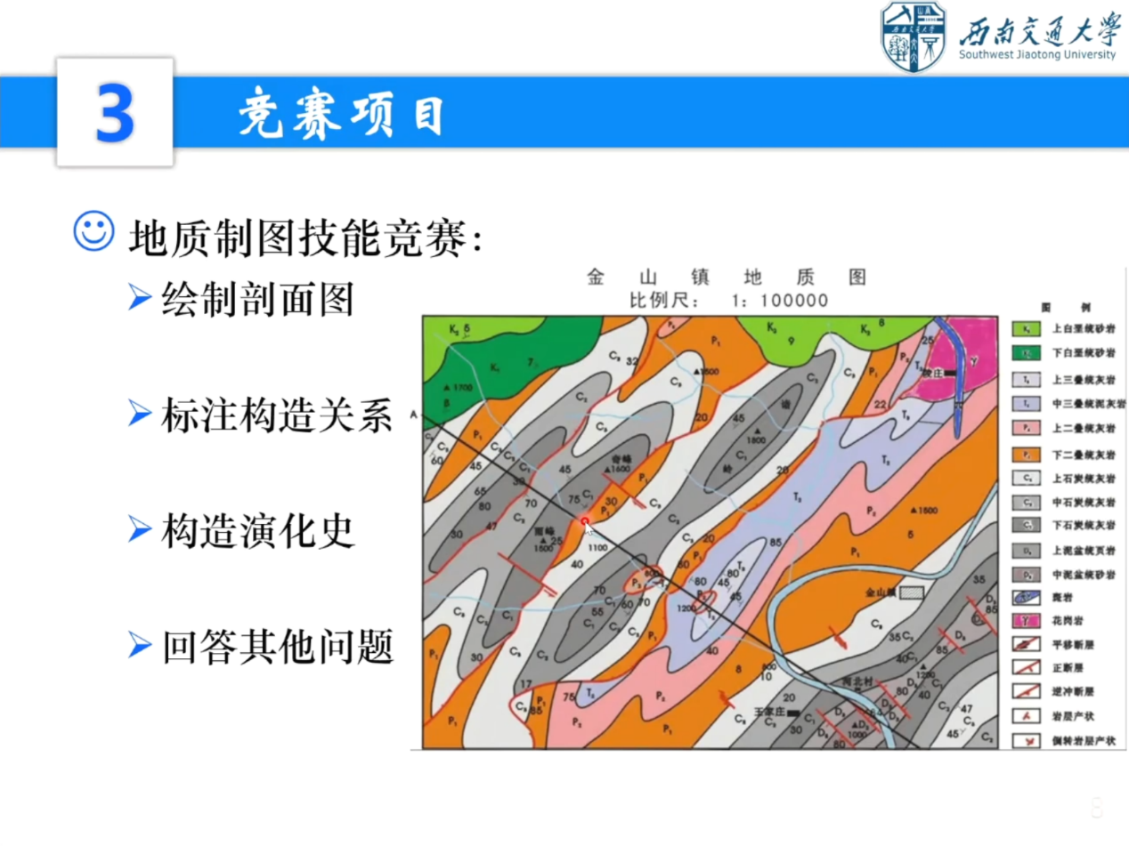 宣讲会上,刘老师详细介绍了本次地质技能竞赛的两个项目:“岩石鉴定技能竞赛”和“地质制图技能竞赛”。岩石鉴定要求学生准确描述岩石标本的颜色、结构、构造、矿物组成及含量等特征,并给出合理命名;地质制图要求学生绘制地质剖面图,分析区域构造演化史,注重图纸的准确性、规范性与完整性。为充分调动低年级学生的参赛积极性,同时保障竞赛的公平公正,本次比赛分为专业组与非专业组(新秀组)赛道,不同赛道比赛内容及难度各有侧重,且独立评奖。为不同阶段的学生提供了展现自我的舞台。