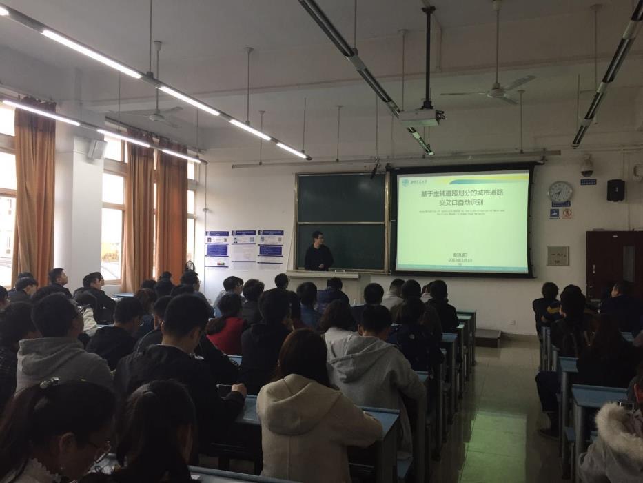 6、本次讲座是地学学院研究生会在下半学期举行的第一场“地学新星”讲座,多数同学按时到教室并进行了签到,个别同学6:30之后才到现场,此时后面的位置已坐满,但前面仍有空缺,个别同学见后面已没位置,停留片刻后便离开。改进措施:最为工作人员的我们,应主动地引导同学合理安排座位,对于晚来的同学,鼓励其往前坐。