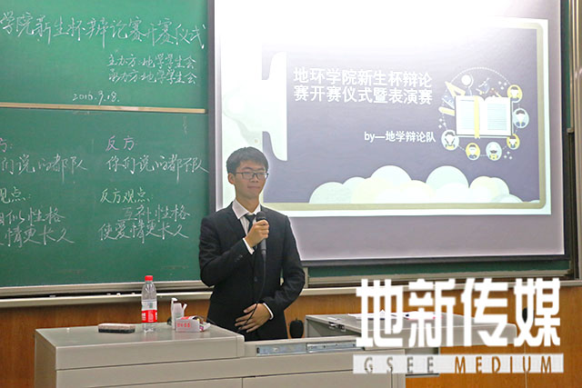 新生杯辩论赛开幕表演赛在X4158教室拉开序幕。此次表演赛到场的嘉宾有地球科学与环境工程学院2016级辅导员:翟琦老师、卢琴老师;地球科学与环境工程学校学生会指导老师李靖,学院学生会主席团成员张海鹏、唐海元、勒伍松、苏紫敏、梁之圆。